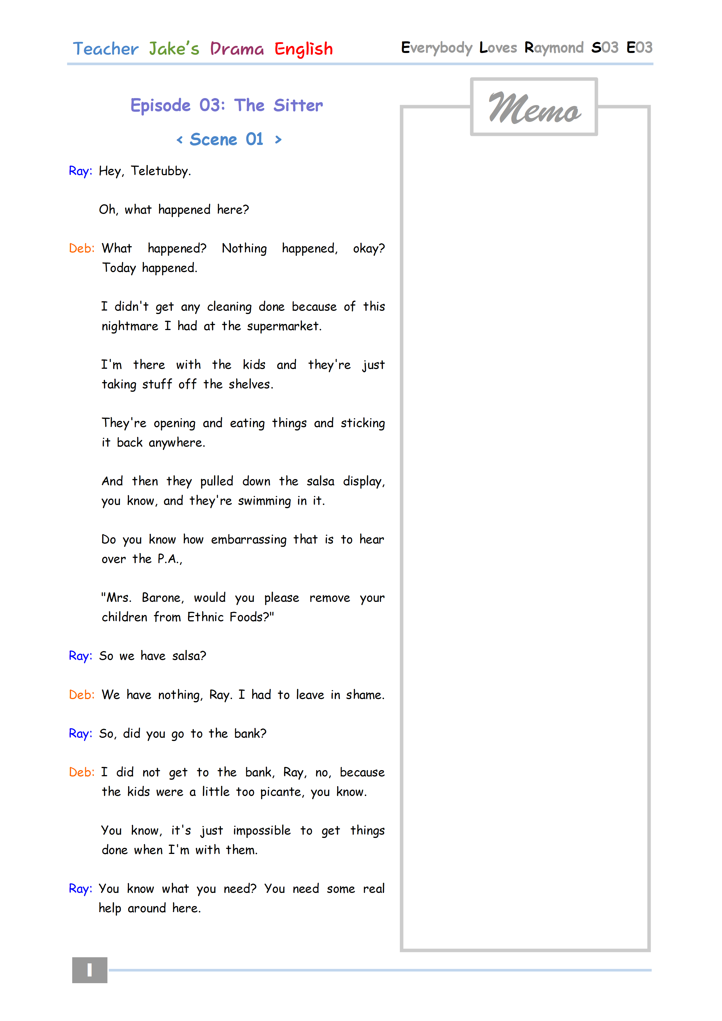 | 드라마 대본 | Everybody Loves Raymond S2 E20, 21 (1) | 2024.01.08 |